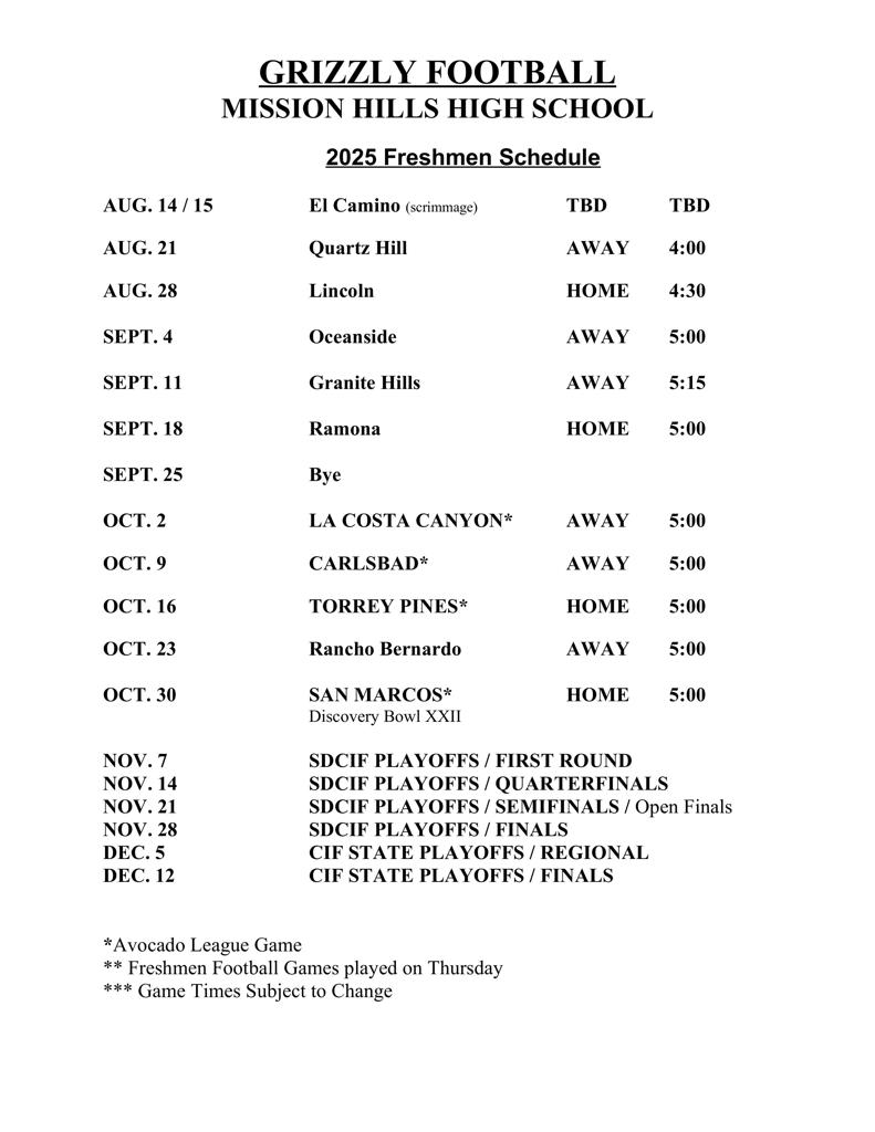 Freshman Football Team Page